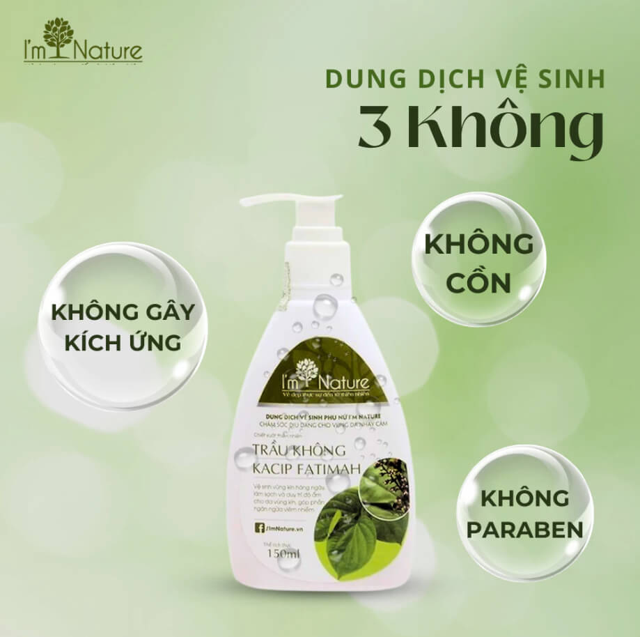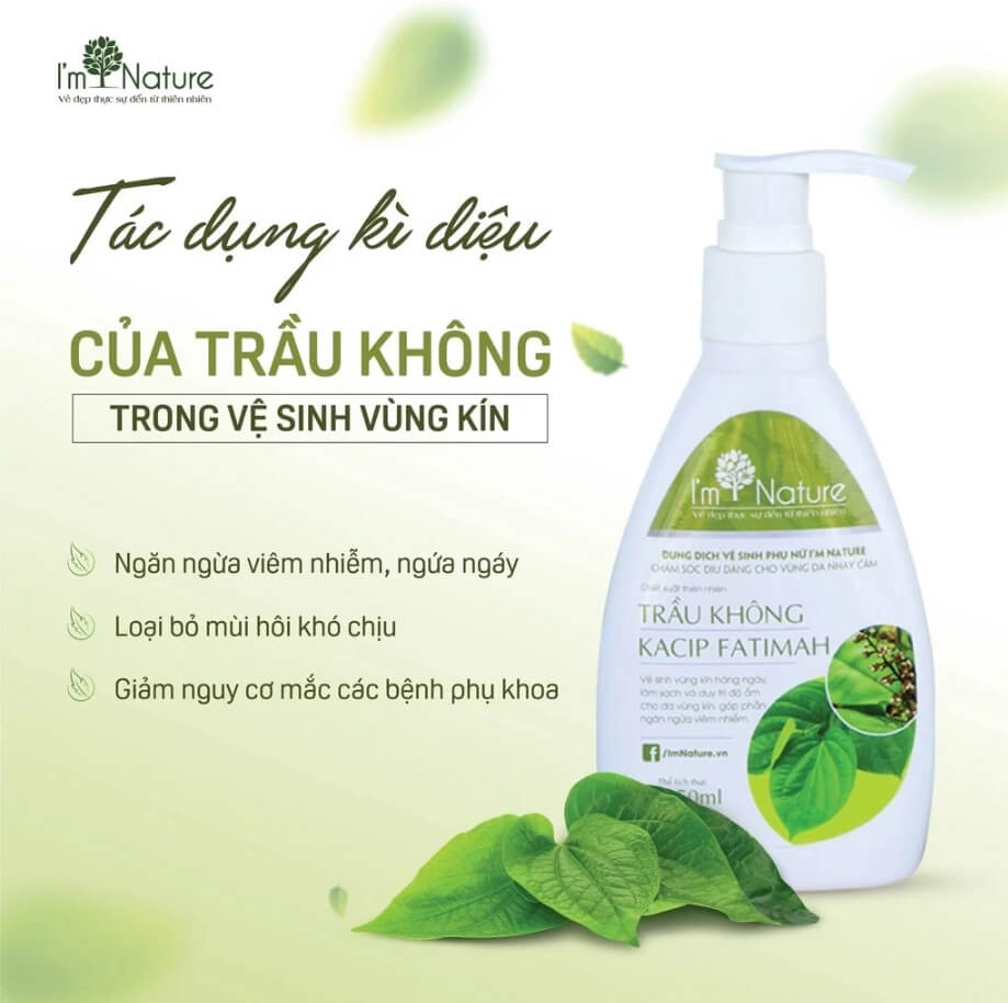 Dung dịch vệ sinh lá trầu không I’M NATURE được bào chế với công thức đặc biệt từ các thành phần thiên nhiên, mang lại nhiều công dụng vượt trội giúp phái đẹp tự tin và khỏe mạnh mỗi ngày.