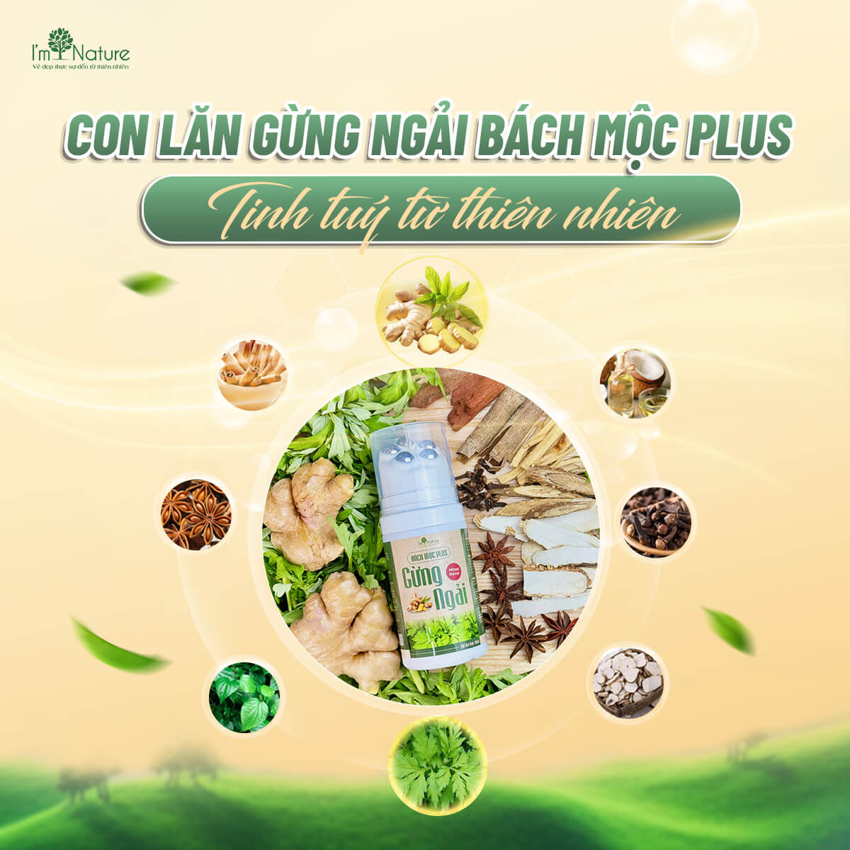 Con lăn Bách Mộc PLus Gừng Ngải được chiết xuất từ tinh túy thảo mộc Việt Nam với những thành phần quen thuộc như gừng, ngải cứu cùng 17 vị thảo mộc chuyên dùng cho tình trạng đau cơ xương khớp. "Người Nam dùng thuốc Nam" - các vị thảo mộc của Bách Mộc Plus đều được trồng tại Việt Nam, phù hợp, an toàn và lành tính.